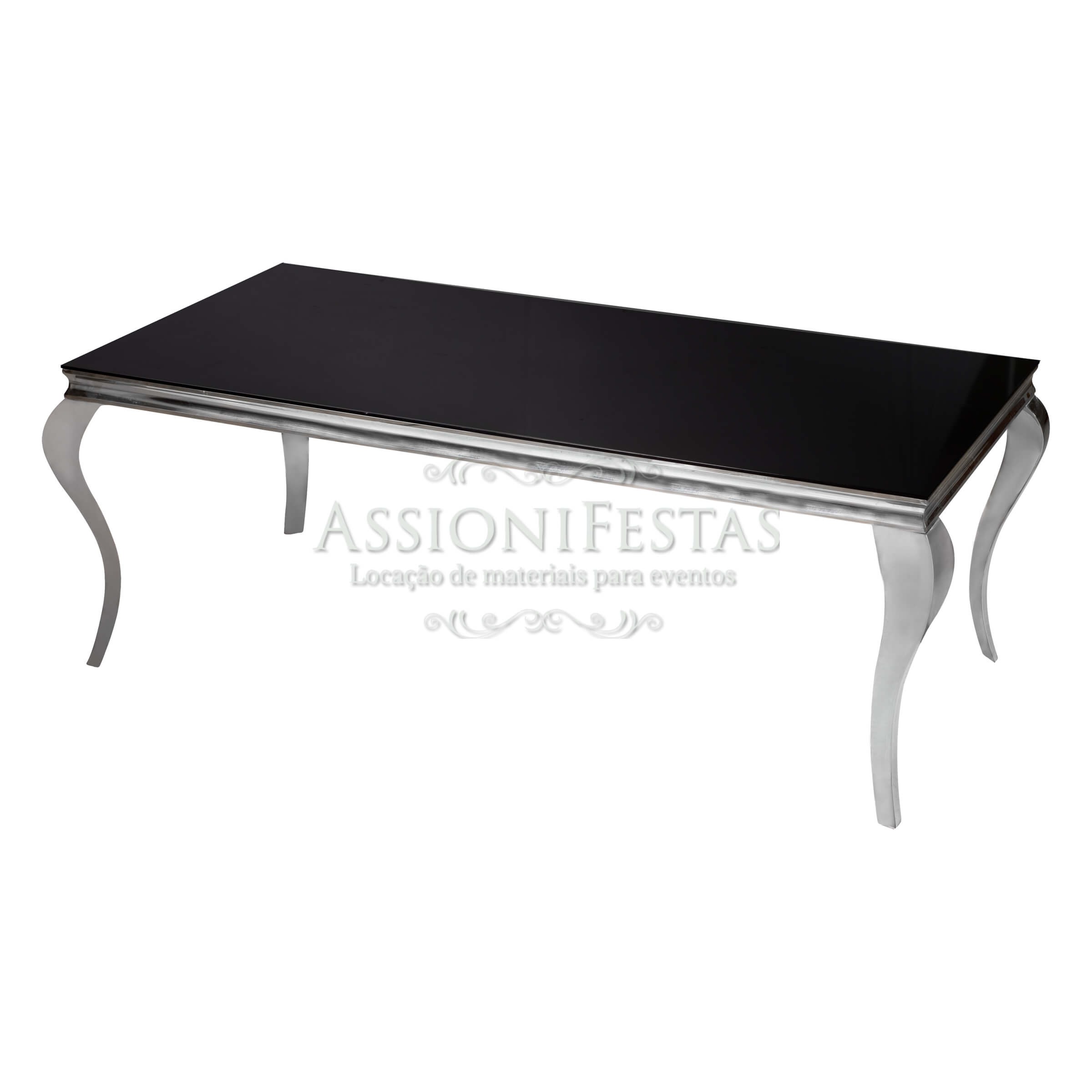 Mesa Retangular Preta Pé Inox – 2,00C x 1,10L